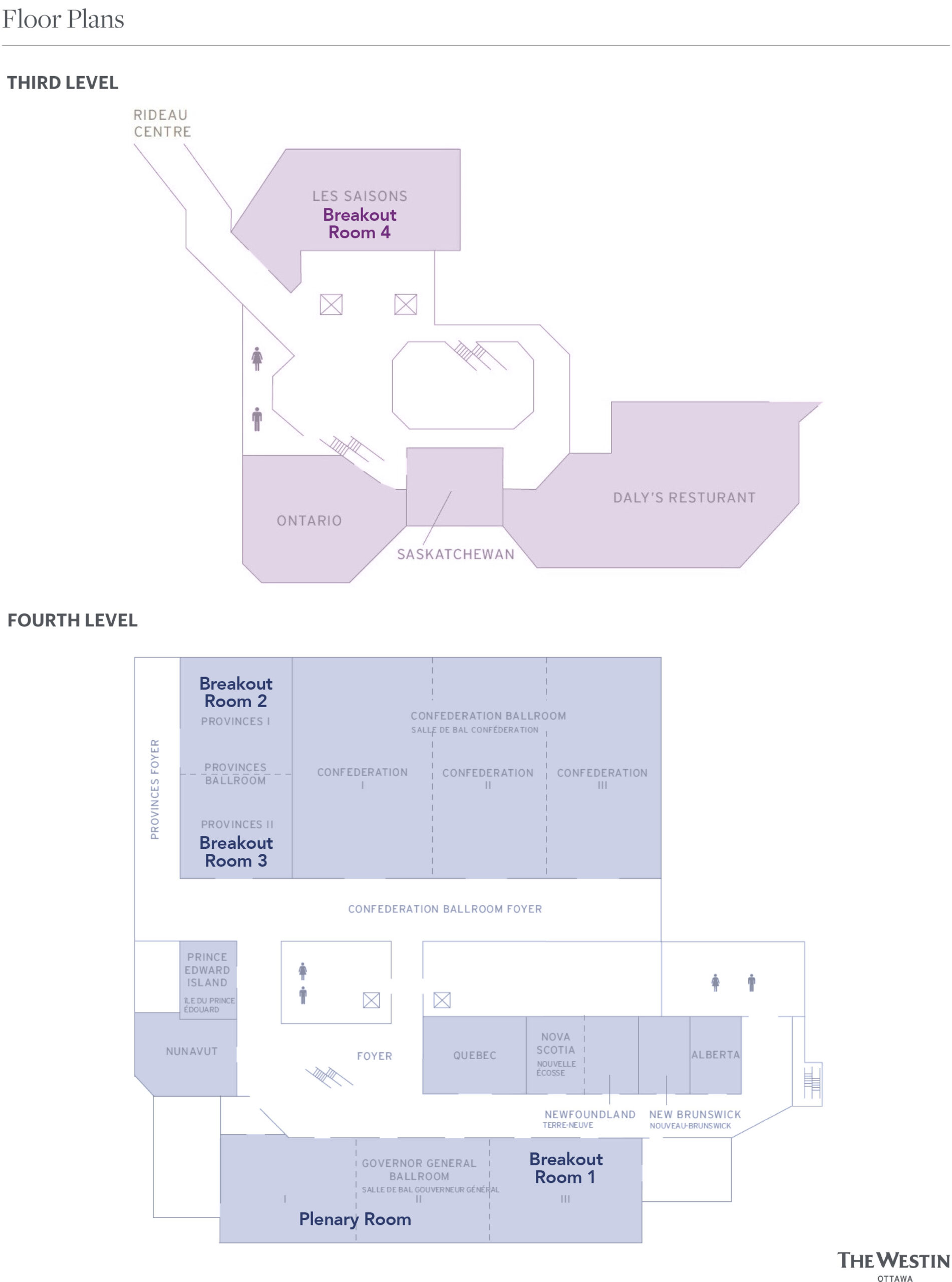 The forum will be held on Level 3 & 4 of The Westin Ottawa. The following rooms and map locations are provided: